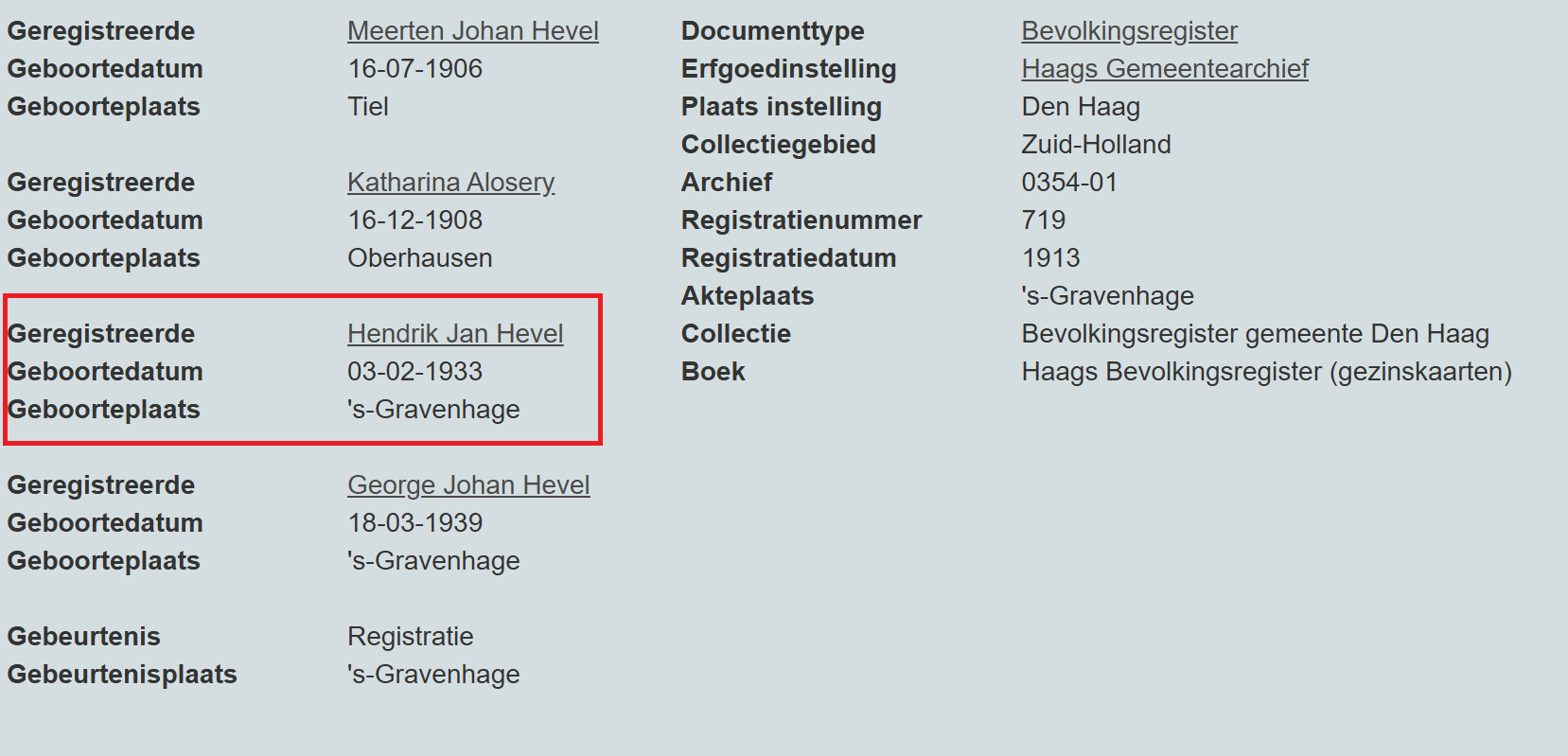 Hồ sơ về ông Hendrik Jan Hevel - ông của cầu thủ Hector Hevel