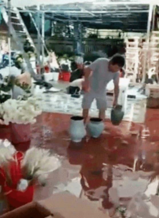 Bên trong nhà Đỗ Thị Hà, đội trang trí hoa đã tiến hành thi công từ chiều 15/10.