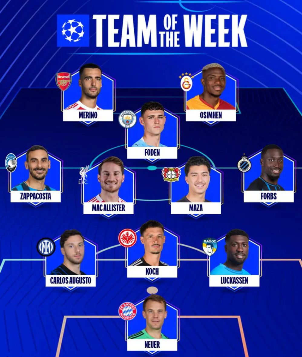 Ban kỹ thuật UEFA mới đây đã công bố đội hình tiêu biểu vòng đấu Champions League. Đáng chú ý, tiền vệ Việt kiều Ibrahim Maza được góp mặt, sánh vai cùng những ngôi sao như Neuer, Foden, Osimhen, Mac Allister.
