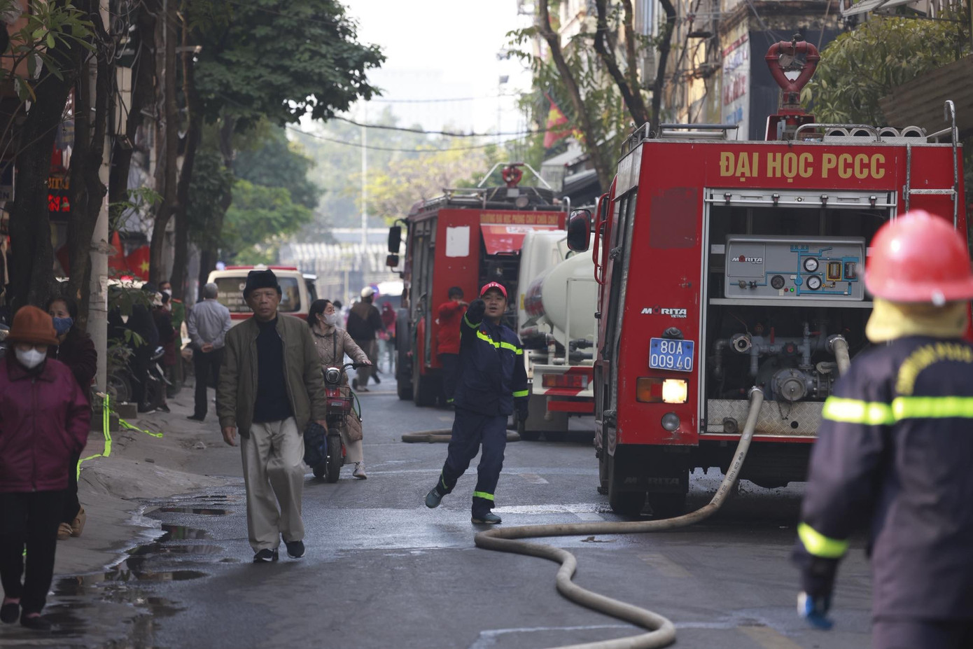 Tiếp nhận tin báo, lực lượng PCCC&CNCH Công an TP Hà Nội đã điều động nhiều xe chữa cháy cùng cán bộ, chiến sĩ đến hiện trường dập lửa, cứu nạn.